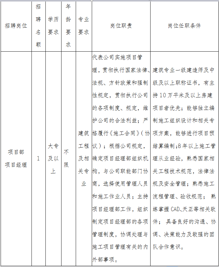 (一)本次招聘的項目經(jīng)理簽訂以完成一定工作任務為期限的勞動合同,預計時間2年。